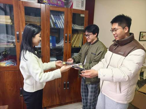 本网讯(通讯员 宋梓源 杨笑冰)为缓解2026届考研考公学子的冲刺压力,传递学院深切关怀,12月3日,国家安全与应急管理学院组织开展“暖冬护航”爱心加油包发放活动,学院党委副书记任华、毕业班辅导员常婷与备考学子共同参与活动。
