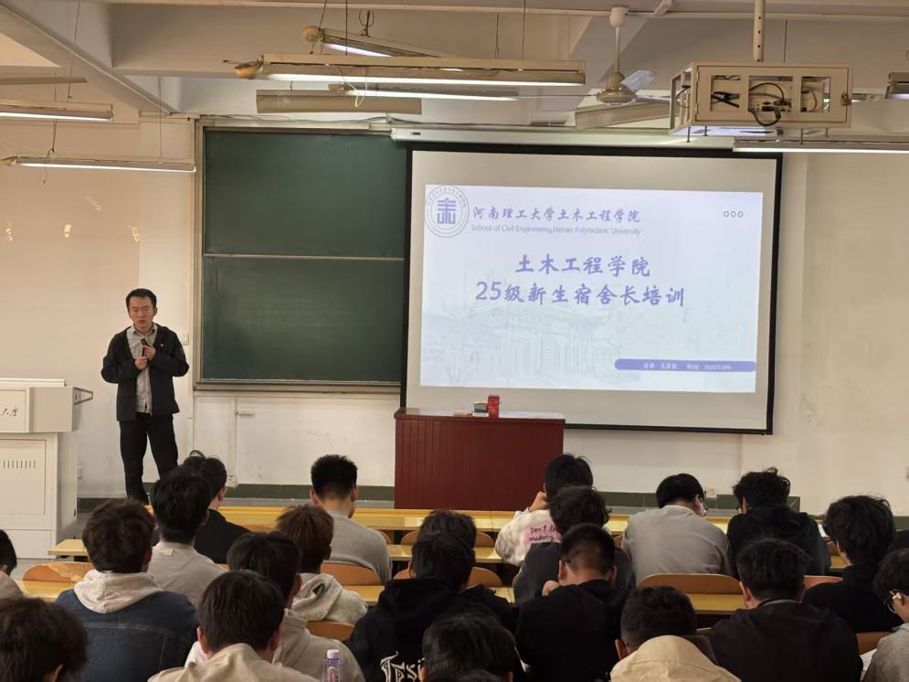 为筑牢宿舍安全防线,营造舒适和谐的学习生活环境,助力25级新生养成良好生活习惯,11月9日下午,土木学院在201会议室成功举办新生宿舍长培训活动。本次培训由张纪云老师主持,班长联席会宿风部部长王禹钦同学主讲,100余名新生宿舍长参与培训学习。