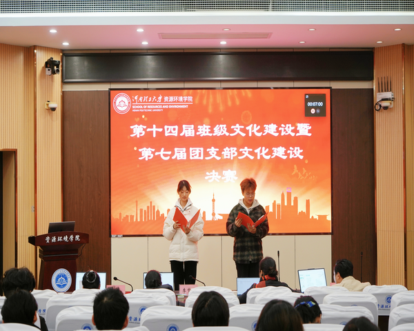 为了增强集体向心力,培育成员归属感,12月11日中午,资环学院于资环楼第I学术报告厅举办了第十四届班级文化建设暨第七届团支部文化建设决赛。2023级辅导员李梦杰、2024级辅导员杨澳伟以及2025级辅导员王静和薛梅担任评委,2025级的八支优秀队伍参与决赛。