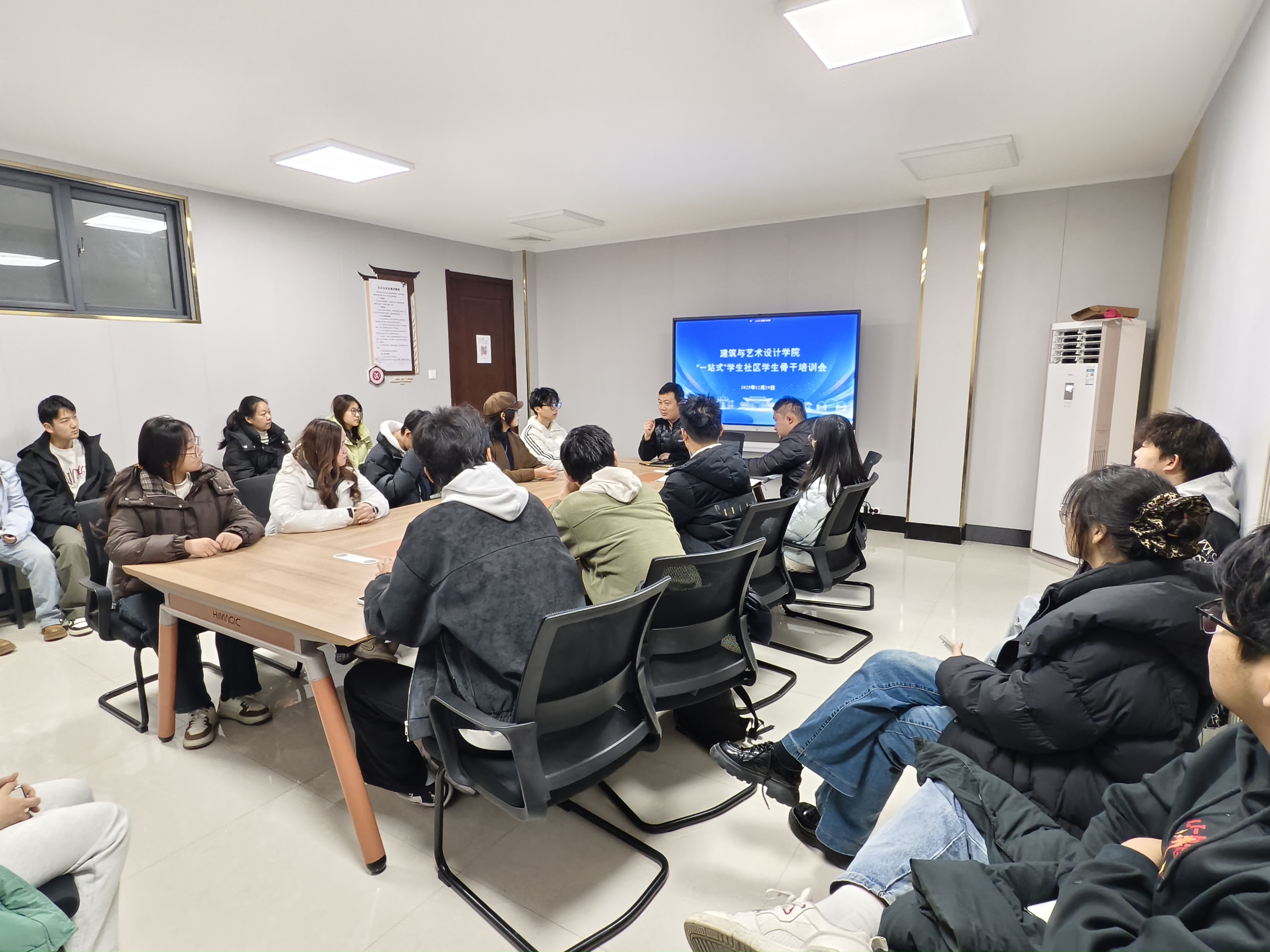 为进一步强化学生骨干的责任意识与服务能力,建艺学院于2025年12月29日在北校区7号楼109会议室组织召开“一站式”学生社区骨干培训会。学院学工办副主任金欢、社区所属2号与7号公寓楼楼长、单元长、层长以及社区功能性党团组织负责人等30余人参加培训。会议由学院学生社区负责人李雪峰主持。