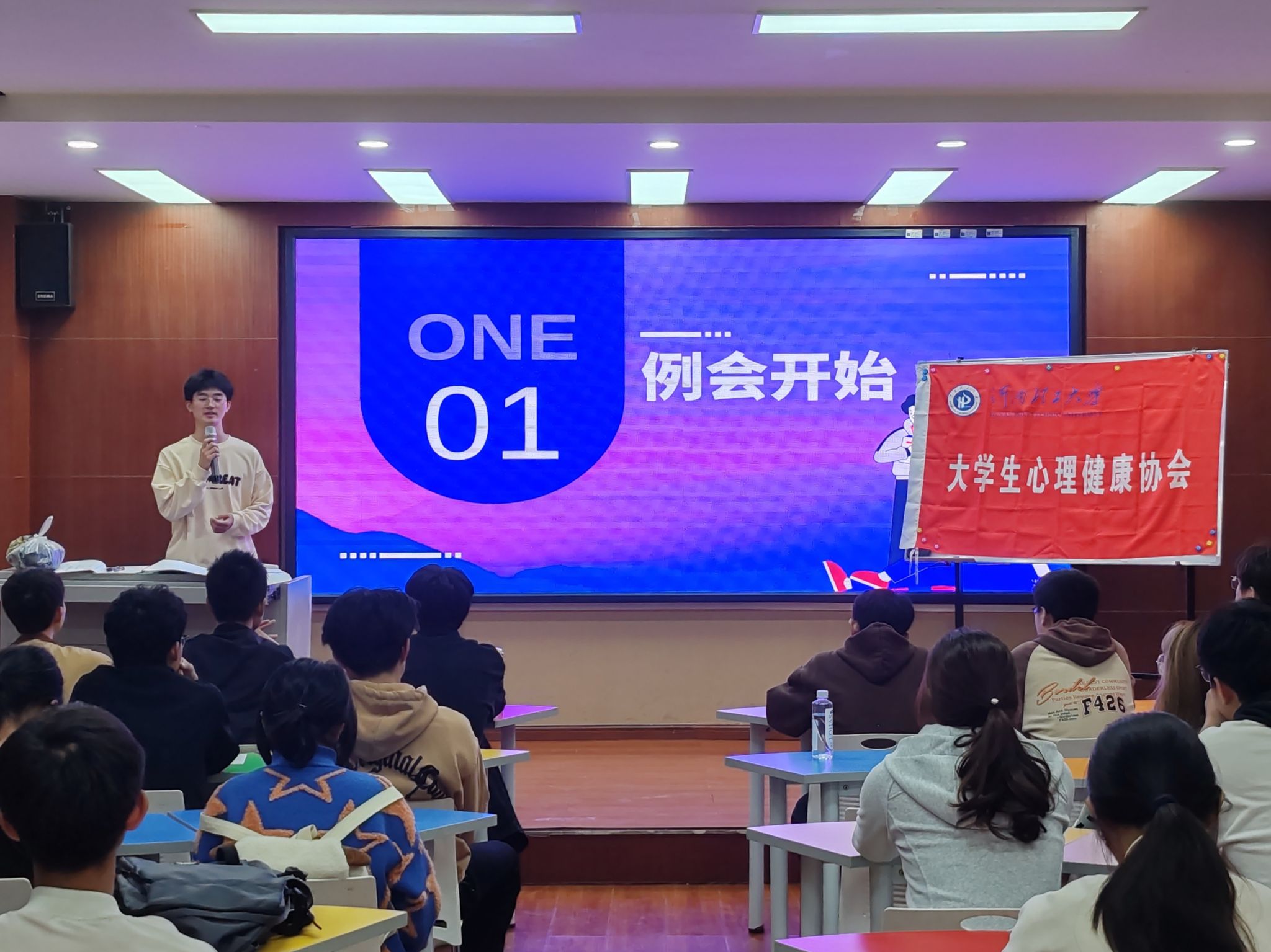 为明确大学生心理健康协会各部门职能,加深新成员之间的情感联结。4月9日,大学生心理健康协会在心理教育与咨询中心134团体辅导室召开了第二次全体例会。会议由协会人力资源部干事胡博涵主持。